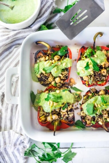 Serve with warm, crusty bread or flatbread to scoop up every bit of pesto! Serve over grains or greens to make a bowl or salad. For a little extra protein, top with soft-boiled eggs, grilled halloumi, or mozzarella balls.